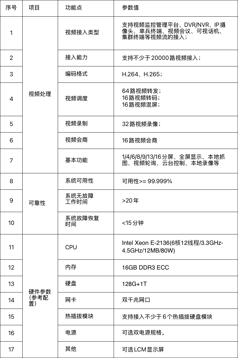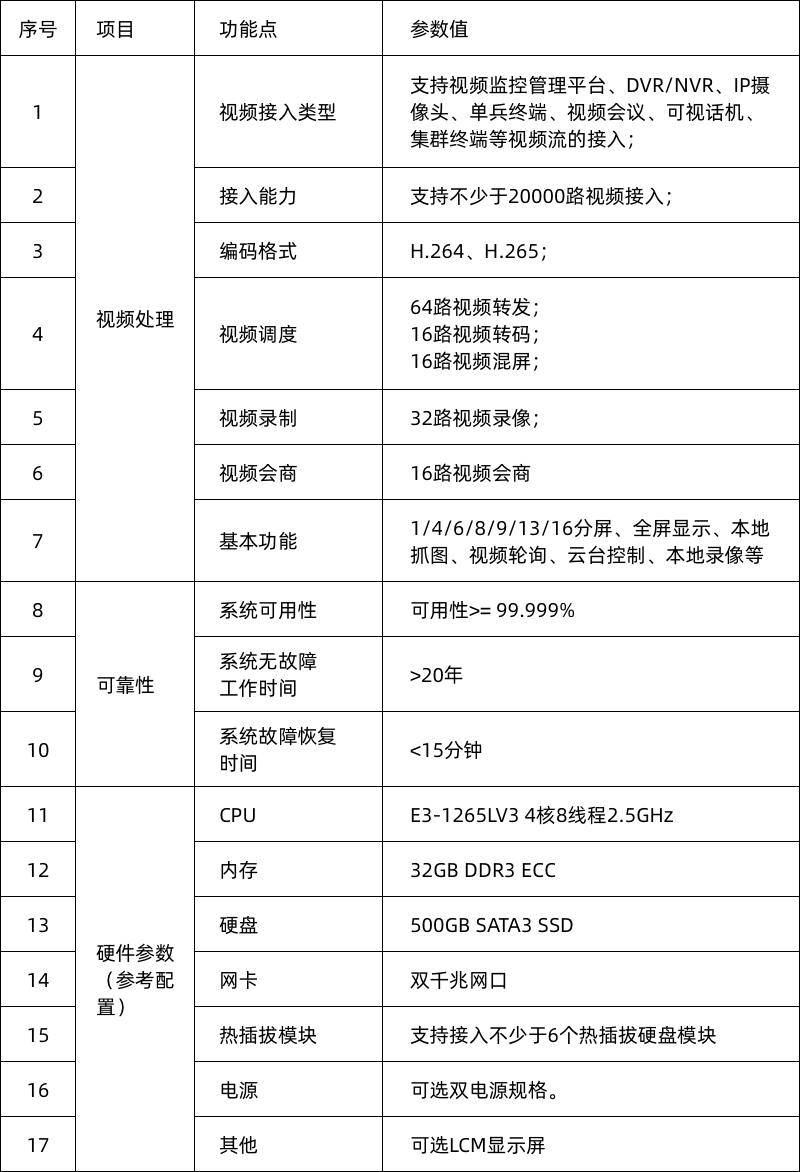 视频服务器支持ITU-T H.264、H.265等视频编码标准并支持1+1热备,可实现不同编码格式、不同大小、不同码率及分辨率视频源的综合处理,通过调度台完成视频浏览、视频轮询、视频转发/分发、视频转码、多路混屏、视频上墙、视频通话、视频会商等视频调度功能,同时支持多种分屏显示模式、全屏显示、本地录像、本地抓图、云台控制等便捷实用功能。