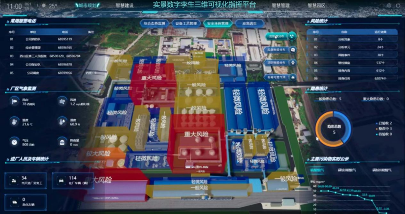 政府应急指挥系统满足对装备一体化、指挥扁平化、操作智能化的建设要求,提高指挥调度的管理效率与智慧应用,实现跨区域、跨部门的统一指挥协同,实现对突发事件的一键调度、可视指挥、快速上报、统一部署、迅速处置和联合行动,提高应急指挥实战化能力,建设数字孪生可视化应急管理平台。