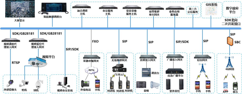 应急管理平台主要能够实现与有线/无线通信网络、数字集群网络、计算机网络、移动通信网络等网络的互联互通,并实现统一的指挥调度,满足日常接报、应急指挥、应急资源管理、信息发布、群防群治、预案管理、研判分析为一体,实现了全镇区域安全指挥监控,并可实现与上级县级政府部门联动。